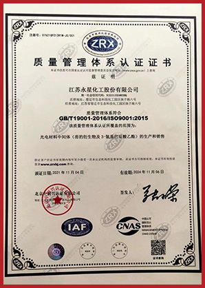 江蘇永星化工股份有限公司成立于2010年,位于江蘇省宿遷市宿豫區生態(tài)化工科技產業(yè)園揚子路6號,注冊資本3215.463萬元,占地105畝,分為南北兩個廠區。